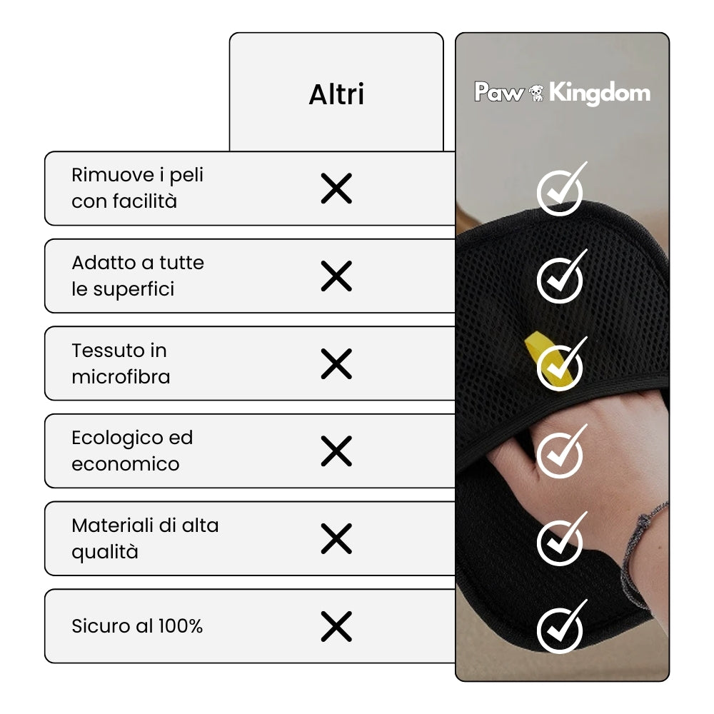 «Uso questo guanto ogni giorno per eliminare i peli dal mio maglione e dai cuscini. È delicato sui tessuti ma super efficace. Lo consiglio a chi ha animali in casa!»